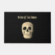 Gotische Schädelkopf beige schwarze Grunge Custom Design Wohngestaltung. Moderner Vintager Stil, gruselig, beängstigend, spoky, Text re Anzeigen eingeben, wenn Sie es wagen. Halloween  Bodenmatte. Bildrecht Marg Seregelyi Fotografie.