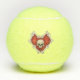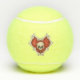 Diese Tennisbälle haben einen weißen Schädel in der Mitte eines roten Herzens, der mit einer Grenze von weißen Knochen auf der Vorder- und Rückseite umrissen ist.
