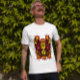 Dieses Design ist eine erbitterte und bedrohliche oni Maske. Die oni Maske ist rot gefärbt mit scharfen Hörnern und Reißzähnen. Es hat leuchtende Augen mit offenem Mund. Die oni ist offen und zeigt einen Schädel darunter. Hinter der Maske sind zwei vertikale Banner mit dem Kanji Samurai und bushido.