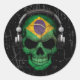 Dieses einzigartige Design des Künstlers Jeff Bartels besticht durch einen dunklen Dj-Schädel, der mit der Flagge Brasiliens bemalt ist. Metallische Kopfhörer sitzen oben auf dem alten Schädel und geben ihm das Aussehen eines Musik Dj. Große Risse schlängeln sich über den Knochen, was dem Schädel einen alten und kaputten Look verleiht. Der Hintergrund ist mit Kratzern und Schellen bedeckt, die an jede gewünschte Farbe angepasst werden können und dem Design einen Vintagen Look verleihen. Dieses stilvolle Dj Skull-Design ist ein guter Weg, um Ihre Liebe von Musik und brasilianischen Stolz zu zeigen.