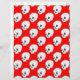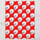 Ein Muster weißer Schädel auf einem roten Hintergrund. Originelles Design mit Zeitungspapier-Effekt. Schwarz, Weiß und Rot-Cartoon.
