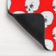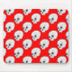 Ein Muster weißer Schädel auf einem roten Hintergrund. Originelles Design mit Zeitungspapier-Effekt. Schwarz, Weiß und Rot-Cartoon.