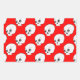 Ein Muster weißer Schädel auf einem roten Hintergrund. Originelles Design mit Zeitungspapier-Effekt. Schwarz, Weiß und Rot-Cartoon.