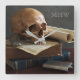 Skull on Books custom monogram wall clock Quadratische Wanduhr