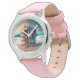 Kinderuhr aus Edelstahl mit rosa Lederarmband