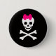 Dieses Emo Button Abzeichen verfügt über einen Schädel & Kreuzknochen mit einem rosa Bogen.