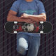 Unleash your inner rebel with the "Skull Rider" skateboard, a masterpiece of dark artistry and raw power. Featuring a striking skull emblem set against a backdrop of bold accents, this skateboard is not just a ride, but a statement. Designed for those who live on the edge and thrive in the shadows, this board offers a perfect blend of performance and style. Whether you're carving through the streets or owning the skatepark, the "Skull Rider" skateboard is your companion in every daring adventure. Built for durability and speed, it ensures you ride with both confidence and attitude.