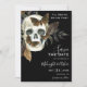 Wunderschöne Hochzeit Sichern Sie die Date Einladung mit Til Death Do Us Part Sprichwort und Schädel mit Schmetterlingen und Farnen auf schwarzem Hintergrund. Ideal für eine gotische oder Halloween Hochzeit. Sehen Sie sich auch unsere anderen gotischen Hochzeitsmöglichkeiten an.
