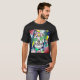 Farbenfroher Schädel zeichnend auf dem T - Shirt eines Mannes. Tshirt einzigartige Kunst Illustration.