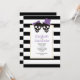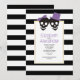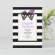 Skull Paar schwarz-weiße Streifen lila Halloween Hochzeitseinladung. Ein lustiges schwarzes Schädelpaar mit lila Bogen und einem eleganten schwarz-weiß gestreiften Musterrahmen sind die Elemente dieser modernen Einladung.