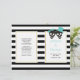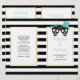 Skull Paar mit einem aqua blauen Bug der Braut und Aqua hat die Bräutigam, und schwarz-weiße Streifen modernen Halloween gefaltete Hochzeitsfeier und Party-Programm. Es gibt weiße Rahmen mit goldener Kontur mit Ihrem Text.