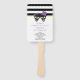 Skulls und schwarz-weiße Streifen lila Hochzeitsprogramm Hand Fan. Es enthält ein Schädelpaar. Die Braut trägt einen lila Bogen und die Bäuerin einen lila Hut. Im oberen Teil befindet sich ein schwarz-weißer Streifen.