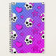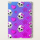"Skully Pop Kawaii" Dieses spielerische und edgy Design vereint Pastelltöne in lila, rosa und blauen Farbtönen in einem Gradientenschachbretthintergrund. Die Skulpturen im Cartoon sind mit rosa Bögen geschmückt und verleihen ihnen eine niedliche, aber punk-inspirierte Drehung. Die Schädel sind fett rosa Herzen und umrissen lila Sterne, die ein lustiges, skurriles Gefühl verleihen. Die Gesamtästhetik verbindet Elemente der Kawaii- und der emo-Pop-Kultur.