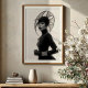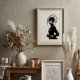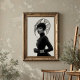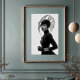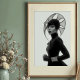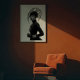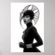 Mit diesem faszinierenden Schwarz-Weiß-Kunstdruck, einem wahren Meisterwerk avantgardistischer Mode und künstlerischen Ausdrucks, macht er eine beeindruckende Aussage. Dieses beeindruckende frontale Portrait zeigt eine Frau mit intensiver Anziehungskraft, gekrönt von einem außergewöhnlichen, skulpturalen schwarzen Hut, der sich nach außen mit komplizierten, fließenden Linien und einer subtilen Maschenstruktur ausbreitet und eine faszinierende Silhouette schafft. In einem schwarzen Rollkragen mit langen Ärmeln und eleganten Lederhandschuhen gekleidet, bietet ihr minimalistisches Kleid eine raffinierte Leinwand für die dramatische Kopfbekleidung und die schimmernden silbernen Armbänder. Ihre blasse Haut, ihre schwarzen Lippen und ihr durchdringender Blick bilden einen faszinierenden Kontrast zu ihrem dunklen Ensemble und dem unberührten weißen Hintergrund und unterstreichen ihre kraftvolle und direkte Präsenz. Dieses Kunstwerk besticht durch seine zuversichtliche und zuvorkommende Haltung und verkörpert eine erbitterte, geheimnisvolle und unbestreitbar elegante Eleganz. Ideal für moderne Wohnräume, Modestudios oder jede Dekoration, die eine Touch von einzigartiger Eleganz, kühner Kunst und einer wirklich unvergesslichen visuellen Erzählung sucht.