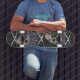 Skulpturen mit silbernen Details und lila Dunst Skateboard
