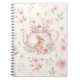 Skurriler Hasenteekanne Blumen-Frühlings-Notizbuch. Dieses Design zeigt einen entzückenden skurrilen Hasen, der in einer rosa Teekanne sitzt, umgeben von Frühlingsblüten und grünem Laub. Perfekt fürs Journaling, in der Schule, bei der Arbeit oder als durchdachtes Geschenk.