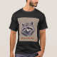 Ein schelhafter Waschbär mit Hornhelm starrt nach oben und zeichnet seinen nächsten wagemutigen Angriff in einer Mischung aus Mäßigkeit und Wikingerwut auf.