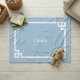 Sky Blue and White Greek Key Monogram Fleecedecke