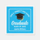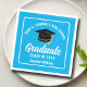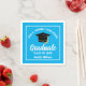 Diese moderne himmelblaue und weiße Papierserie-Serviette für die Graduiertengruppe zeigt klassische Typografie Ihres High School- oder Uni-Namens für die Klasse des Jahres 2025. Passen Sie mit Ihrem geschlossen Jahr unter der schicken handgeschriebenen Drehbuch und schwarzen Graduiertenkappe für ein großartiges personalisiertes Graduiertendekor.