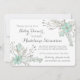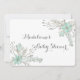 Personalisierte Babydusche Einladungen in Vintagen und rustikalen Frühling pastellfarbenen türkisfarbenen Aqua aquamarine blaue und graue Blume Illustrationen.