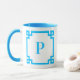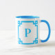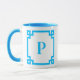 Sky Blue Greece Key Border Monogram Tasse