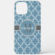 Sky Blue Grey White Marokcan Quatrefoil Monogramm Case-Mate iPhone Hülle