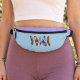 Add good vibes and color therapy to your life with this boho fantasy feather art. Gorgeous, upright, multicolor feathers grace the front of this sky blue and lavender fanny pack. This feel good colorblock waist bag is perfect for workouts, festivals, concerts, the beach, travel and anytime you want to go hands free.