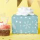 Dieses Papier mit seiner süßen Verpackung ist hellblau mit einem Muster aus weißen Schneeflocken, weißen Polka-Punkten, Sternen und tanzenden Botanicals. Auch passende Aufkleber sind erhältlich.