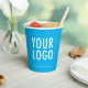 Easily personalize our 8 ounce paper cups with your business logo and custom text. These FDA approved paper cups are for cold and hot drinks. The dimensions for the 8 oz cups are 3.75 inch x 3 inch. Available with or without lids. Also available in 12 oz size. Designed in sky blue and other colors (all colors are customizable). Sold in sets of 8. Low minimum order quantity and no setup fee. Printed in the U.S.A.