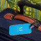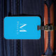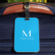 Gepäckanhänger mit himmelblauem, massiven Farbhintergrund und weißen Schriftart .Einfaches und trendiges Design von Alma Wad .Personalisieren Sie es jetzt mit Ihrem Namen und Monogramm ..