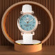 personalized watch, blue dial, gold watch, white leather strap, elegant wristwatch, monogram gift, luxury accessory, custom initials, stylish design, timeless fashion