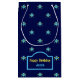 Eine pulsierende marineblaue Geschenktasche mit einem himmelblauen Robotermuster. Diese Geschenktasche hat einen individuellen Empfängernamen.