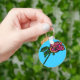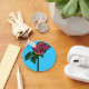 Dieser hübsche Schlüsselanhänger zeichnet sich durch eine farbenfrohe Rose auf himmelblauem Hintergrund aus