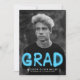 Urbane, trendy Foto Graduation Ankündigungen mit dem Foto des Absolventen mit "Grad" in einem Himmelblau, Spray Farbe Typografie Stil. Personalisieren Sie die Front, indem Sie den Namen des Absolventen, den Schulnamen und das Abschluss Jahr. Die Ankündigung des modernen Abschlusses kehrt zurück, um eine himmelblaue Spritzlackierung zu zeigen.