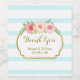 Maßgeschneidertes Textweinetikett in himmelblauen und weißen Streifen-Mustern mit hellrot-rosa Vintagen Aquarellfarben-Blume und Goldrahmen. Kann für jeden Anlass angepasst werden, ideal für Brautpartys, Hochzeiten, Babyduschen und Geburtstagsfeiern.