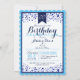Personalisieren Sie diese formelle, elegante, Sky Blue, White, Navy Blue Konfetti Erwachsenen oder Teenager Geburtstagsfeier Einladung. Perfektes Jahr für Frühlings-, Sommer-, Herbst- oder Wintergeburtstage. Neutrales Design für Mann oder Frau, Junge oder Mädchen. Stilvoll und elegant für jeden Erwachsenen oder Teenager Meilenstein Geburtstag inklusive Sweet 16, 18, 21., 30., 40., 50., 60., 70., 75., 80., 85., 90., 95., 100. Geburtstag.