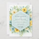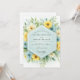This design features a beautiful watercolor arrangement of wildflowers. Soft sky blue and cheerful yellow blossoms are nestled amongst delicate pale green leaves. The painterly style creates a fresh, airy, and romantic atmosphere perfect for a spring or summer matrimonial occasion. This botanical composition is elegant and charming.