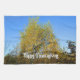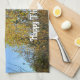 Ein Erntedank-Teetuch mit einer lebhaften Herbstlandschaft aus sonnenbeschienen Bäumen, die mit gelben und grünen Blätter geschmückt sind, Set gegen einen makellosen blauen Himmel. Sie können sie mit einem Gruß, Ausdruck oder Namen personalisieren.