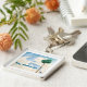 Art print of clouds and palm tree with text.