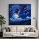 Eine nächtliche Szene eines Sternschnupfs, der die Wolken durchbohrt. Ein brillanter Lichtstrahl, wie ein fallender Stern oder Komet, schneidet über einen dramatischen Nachthimmel, der mit wirbelnden Wolken und entfernten Sternen gefüllt ist. Die lebhaften Farben und das leuchtende Licht wecken unter einem wirklich spektakulären Himmel ein Gefühl des Staunens. Gegen eine tiefblaue Leinwand umrahmen beleuchtete Wolken ein kraftvolles Himmelsereignis - eine strahlende Meteordusche oder ein Komet, das durch die Atmosphäre strahlt. Der Vordergrund von silhouetted Hügeln und farbenfrohen Wildblumen fügt dieser ätherischen kosmischen Darstellung eine Touch irdischer Schönheit hinzu. Ideal, um eine Touch des Staunens zu Ihrer Zuhause hinzuzufügen. Dieses Kunstwerk kann individuell angepasst, gedruckt und heruntergeladen werden.