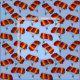 Ein lebhafter Fallschirm in kühnen Farbtönen rot, orange und gelb entfaltet sich anmutig, und ein winziger Skydiver wird darunter aufgehängt, was den Nervenkitzel des freien Falles einfangen lässt. Das Muster wiederholt sich dynamisch über den Stoff und schafft ein spielerisches, abenteuerliches Design voller Energie und Bewegung.