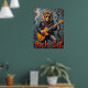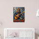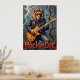 Dieses bezaubernde Gemälde mit einem Löwen, komplett mit Sonnenbrille und Lederjacke, tief eingetaucht in einen elektrischen Gitarrensolo auf einem kahlen, windgekehrten Baum. Ein strukturierter blau-weißer Himmel füllt den Hintergrund. Das lebendige, strukturierte Pinsel schafft eine lebendige und aufregende Atmosphäre und vermittelt den "Rock or Die"-Look dieser einzigartigen, ungezähmten Performance gegen die Skyline.