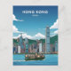 Eine lebendige Abbildung der modernen Skyline von Hongkong, mit dem IFC-Turm und einem Boot auf dem Wasser unter einem bewölkten Himmel.
