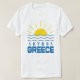Genießen Sie diesen Sommer mit diesem Skyros, Griechenland Sonne und Meereswellen Männer weißen T - Shirt. Dieses blaue und gelbe Design mit Sonnenschein und Wasserwellen mit Skyros im griechischen Schriftart mit einem großen blauen Wort Griechenland.