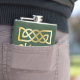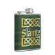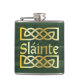 Slainte ist ein Wort, das wörtlich als "Gesundheit" übersetzt wird. Prost! Ein Toast zu guter Gesundheit! Schönes, elegantes, keltisches Knotendesign und Typografie in Gold mit tiefgrünem Aquarellhintergrund.