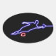 Neonblaues Bild eines Slalom-Wasserläufers, der eine Boje auf schwarzem Hintergrund umrundet.