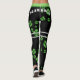 Schwarze Leggings mit grünem Taillenbund und von Hand gezogenen Kleeblättern, wie z.B. vierblättrige Kleeblatten und weißer Blocktext auf der Rückseite, SLAM ROCK.