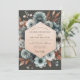 A rich tapestry of deep slate blue blossoms mingles with warm, earthy-toned foliage. This design evokes a mood of sophisticated romance and natural beauty, perfect for an autumnal celebration. Delicate floral clusters create an enchanting visual.