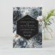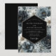This design features a rich tapestry of deep blue and charcoal blooms, accented with creamy white blossoms. The opulent floral arrangement evokes a sense of moody elegance and romantic allure.