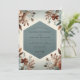 Embrace a romantic, rustic atmosphere with this elegant design. A beautiful arrangement of terracotta and rust-hued blooms cascades delicately across a soft ivory background. These warm, earthy botanicals are perfectly balanced with a deep slate blue hue, creating a stunning and artistic aesthetic for your special day.